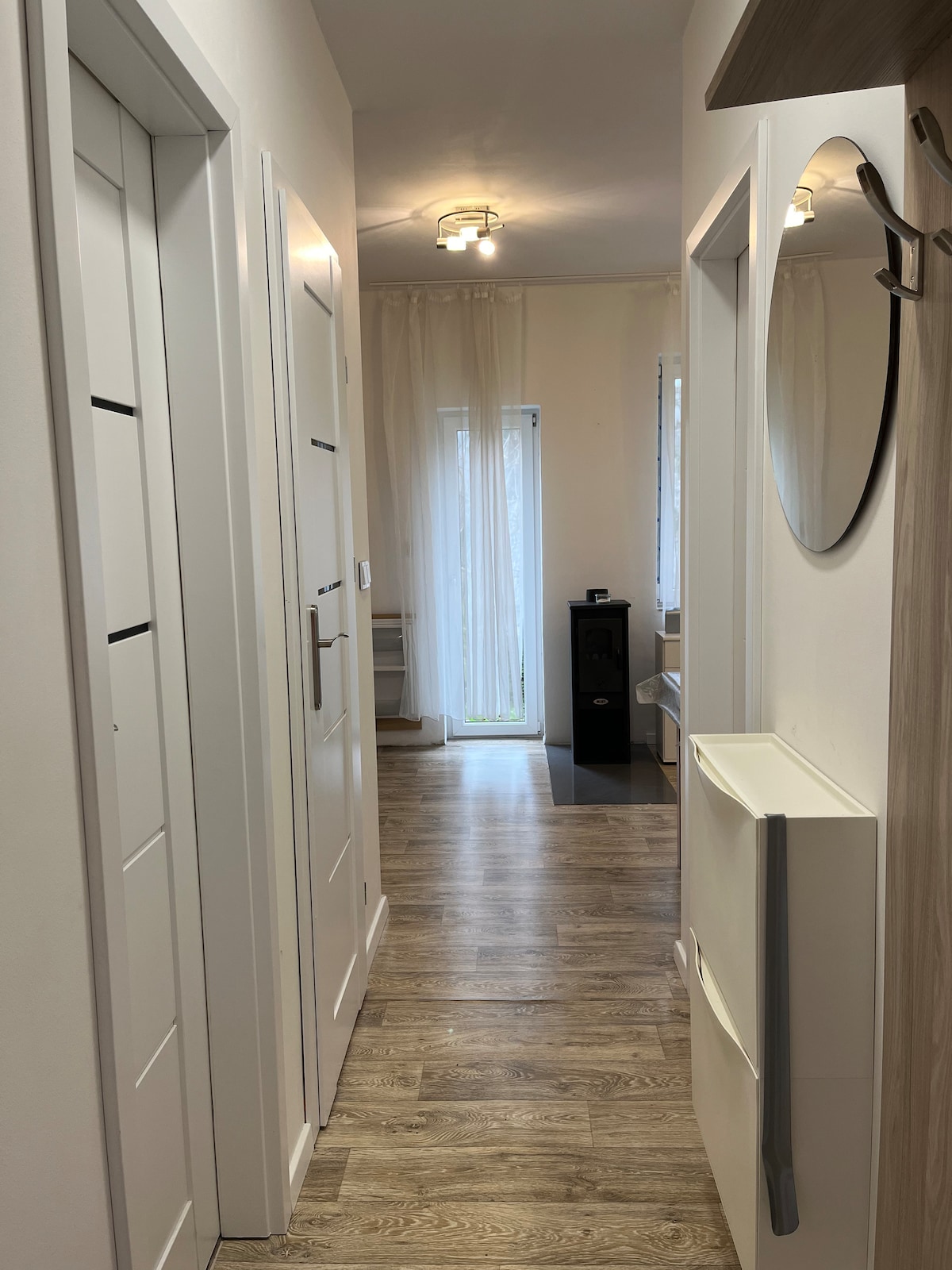 Rádi vás přivítáme v našem rodinném domě, kde budete mít k dispozici byt s vlastním vchodem. Využijte vlastní koupelnu s krásnou vanou, prostornou kuchyň a místo pro odpočinek nebo i práci. Ubytování je vhodné i na delší dobu, protože zde najdete vše jako u vás doma. Pračku, plně vybavenou kuchyň s myčkou na nádobí, kávovarem, varnou deskou i troubou. Parkování před domem, vysokorychlostní Wi-Fi nebo úschova kol či lyží jsou samozřejmostí. Těšíme se na vás. Mikuláš a Eva s rodinou.