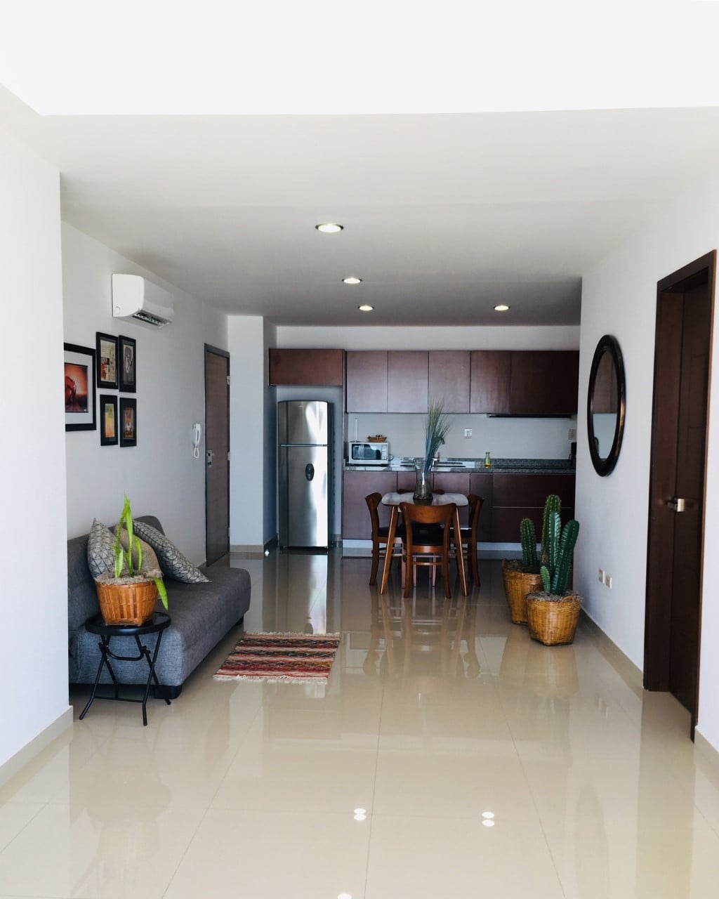 Enjoy easy access to everything from this perfectly located home base. Right in between the golden zone action, live music, that can be loud, walk to the night clubs or to emblematic restaurants like Panama or Pancho’s, or go for a run or a walk on the waterfront, the longest in Latin-America, and in the evening enjoy the night life in the famous Valentino’s area. This modern apartment has two very comfortable rooms each with their bathroom. Apartment is on the 2nd floor with no elevator.
