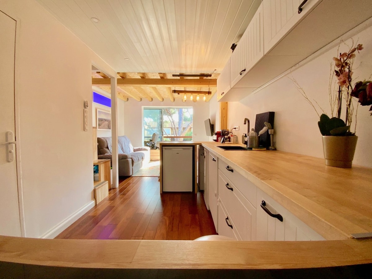 Le Studio situé au cœur des 3 Gruissan se trouve dans une résidence avec parking, au 2° étage sans ascenseur. Niché à seulement 5 mn à pied du village, à 10 mn du port, à 25 mn (7mn à vélo) de la plage des chalets Le studio avec sa terrasse, offre une vue imprenable sur les étangs, la mer, les salins et à 2 pas de la route qui mène aux chalets, doublée d’une piste cyclable. Confortable, moderne, super équipé : Climatisation, Fibre, Piscine 15/06-15/09, 2 vélos, linge lit & bain Un vrai Cocon