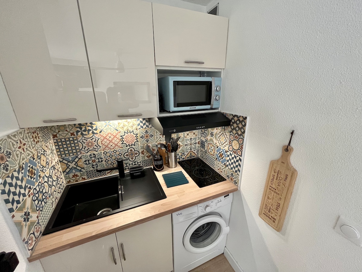 Profitez d’un appartement baigné de lumière avec sa terrasse face à la mer et la plage, sans vis à vis. Appartement 2 pièces d'environ 30 m2, terrasse 10 m2 et place de parking privative. Prestations de confort dans un style moderne et épuré. Il est situé au 2è étage (sans ascenseur) d’une résidence très calme. Le linge est fourni (lit + toilette). Literie récente (2024) 140x190. 2 TV. WIFI (fibre). Idéal pour 2 personnes