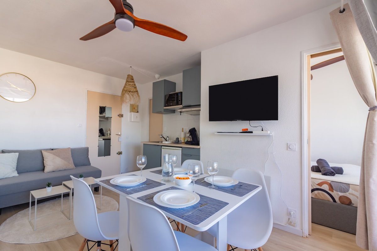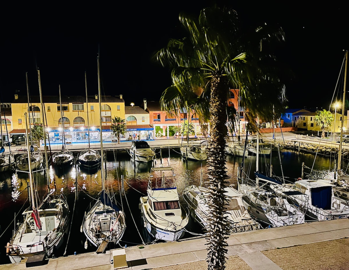 Détendez-vous dans ce logement unique et paisible déjeunez, prenez l apero devant cette magnifique vue sur la mer et sur le mont canigou enneigé l'hiver Le logement est lumineux et fonctionnel Vous êtes à 6 mn à pied du port et ses commerces et de la plage. de belles promenades vous attendent aux pieds du logement Le long du plan d eau grâce a piétonnier. Je n accepte que les voyageurs avec avis favorables