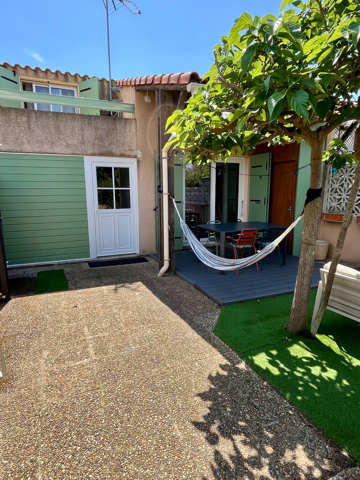 Leucate, résidence Le Mas de la Plage, Maison individuelle avec accès direct sur le bord de plage dans résidence sécurisée. Résidence semi naturiste (accès plage textile ou naturiste) 2 chambres (1 lit double 140 / 1 avec lit superposé 3 matelas / canapé clic clac dans salon. Cuisine équipée. tout confort/ terrasse avec table et salon de jardin /Plancha gaz / TV / lave linge / lave vaisselle...parking privé / WIFI