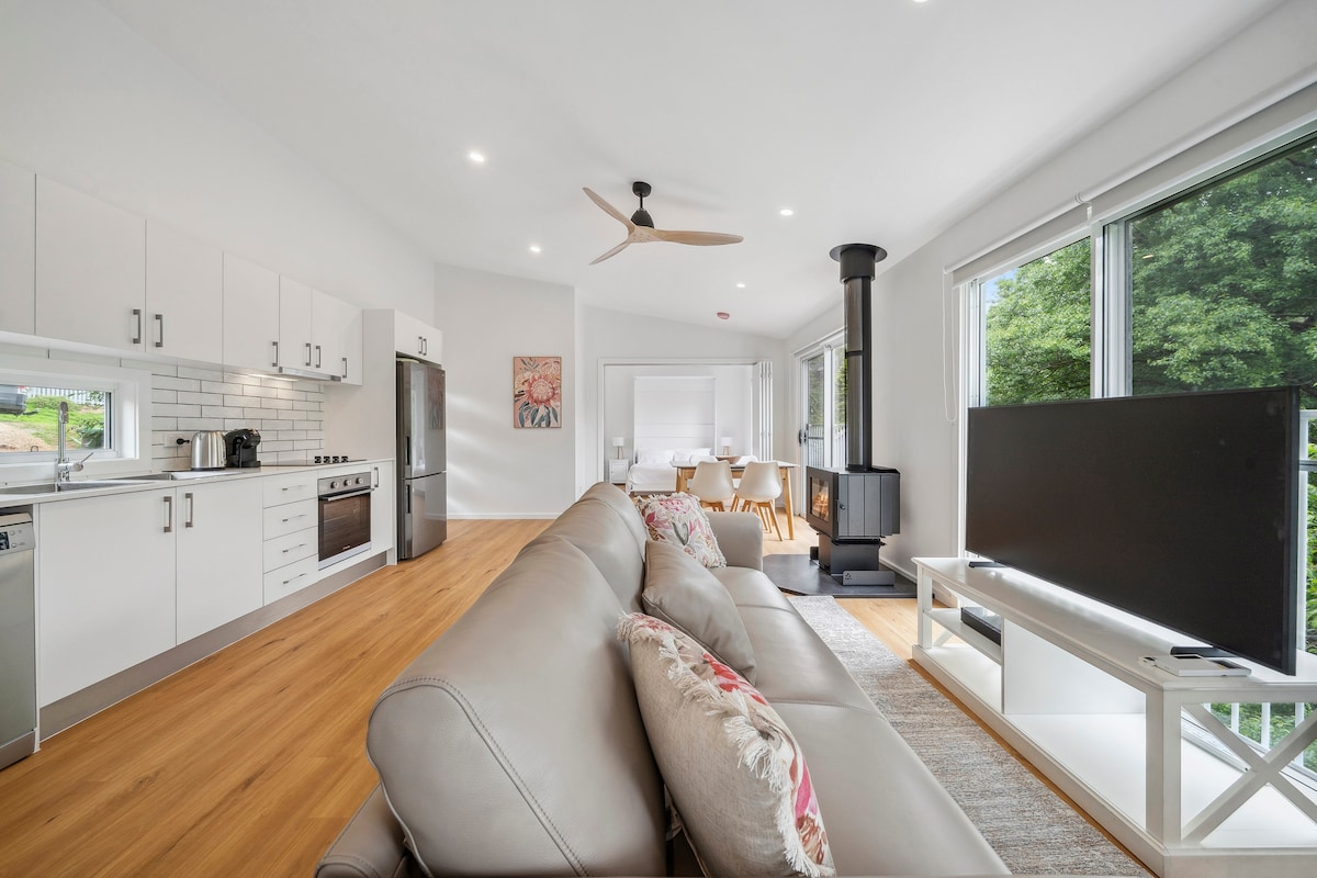 Take it easy at this unique and tranquil getaway Katoomba haven on National Park Hot Spa with Leura Escarpment Views. Heated polished concrete floors make your stay super cosy in winter. Refreshingly cool in summer. Two minute drive or ten minute walk to the Three Sister’s. Few mins stroll to the Prince Henry Cliff walk, Leura Cascades and Bridal Veil falls loop. Super comfy beds. Large sunny, super quiet sundeck to relax, view sunrise and chill. Minutes to restaurants, bar and shops.