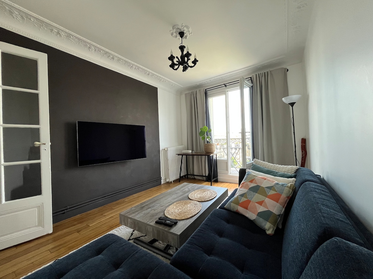 Situated in Levallois-Perret 2 minutes away from the subway station this 50m2 flat is perfect for 2-4 guests. It contains one adult bed room and one convertible sofa. Refurnished and fully equipped: TV, Wi-Fi, coffee machine, washing machine, dishwasher, blender. The flat also contains 2 balconies to enjoy sunset during summer and a private parking space.