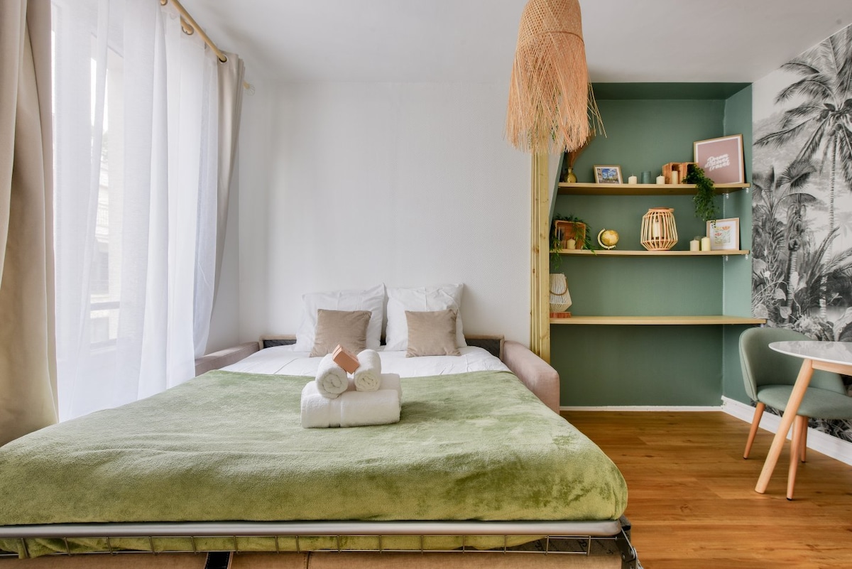 Profitez d'un logement élégant idéalement situé pour rejoindre le centre de Paris. Appartement moderne, calme et lumineux pouvant accueillir deux personnes. Il est composé d'une chambre confortable avec un lit king size, d'une cuisine équipée, d’un grand salon, d’une salle de bain avec douche à l'italienne et de WC séparés. L’appartement est à proximité immédiate de nombreux commerces et restaurants.