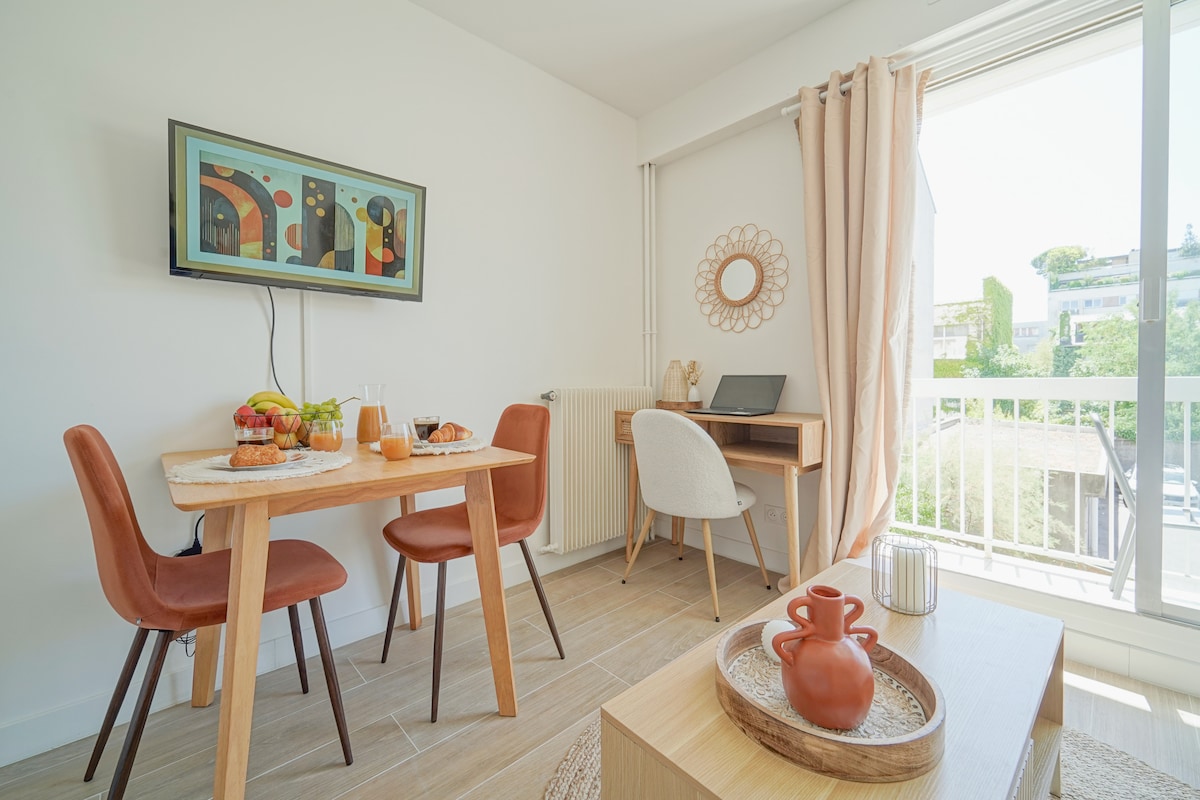 Welcome to Les Fauvelles, our duplex apartment located on the second floor of a characterful house. Just steps away from shops and public transportation, you can easily reach central Paris, while enjoying a quiet and relaxing stay, enhanced by a unique view of the Paris–La Défense towers. On the ground floor, your private terrace offers a lovely space to unwind and enjoy the warmer days.