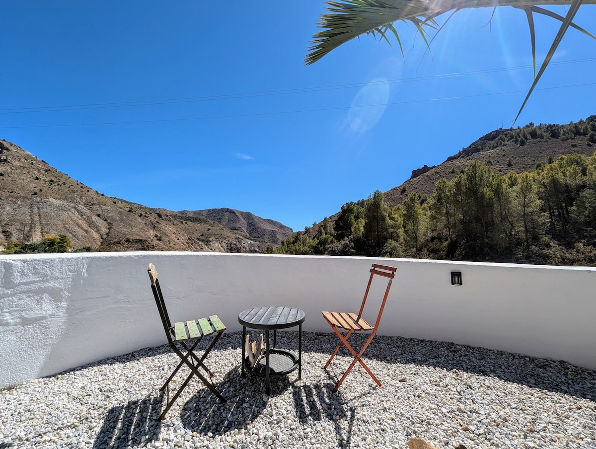 A peaceful retreat quaintly set to the stunning backdrop of the Andalusian mountains. This double room with shared luxury bathroom within the main house offers a budget option for travellers whilst still providing home comforts and stunning outside areas to enjoy. Pool use is seasonal (May to September). Breakfast & Dinner options available to add by prior arrangement. Kitchen use only available for lunch or drinks. En suite room & whole house hire (sleeps 8) also available as separate listings.