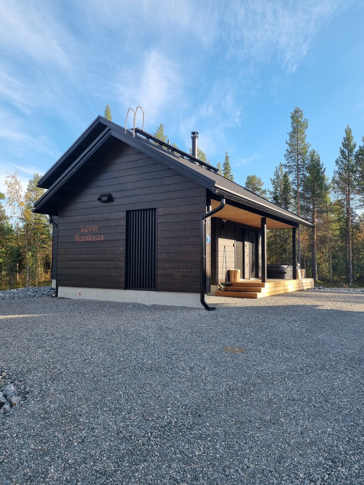 New luxurious villa in Levi. Near services but still in peaceful location, next to forest and ski trail. 80m² in two floors; 2 bedrooms, sauna, 2 bathrooms, kitchen and livingroom which big windows show a beautiful Lapland scenery. Hot tub at the terrace. Covered parking space next to chalet and more free parking in the beginning of the chalet area. Shared hut in the middle of the area. Security camera at the front door. Free Wi-Fi. ig: levinkuiskaus