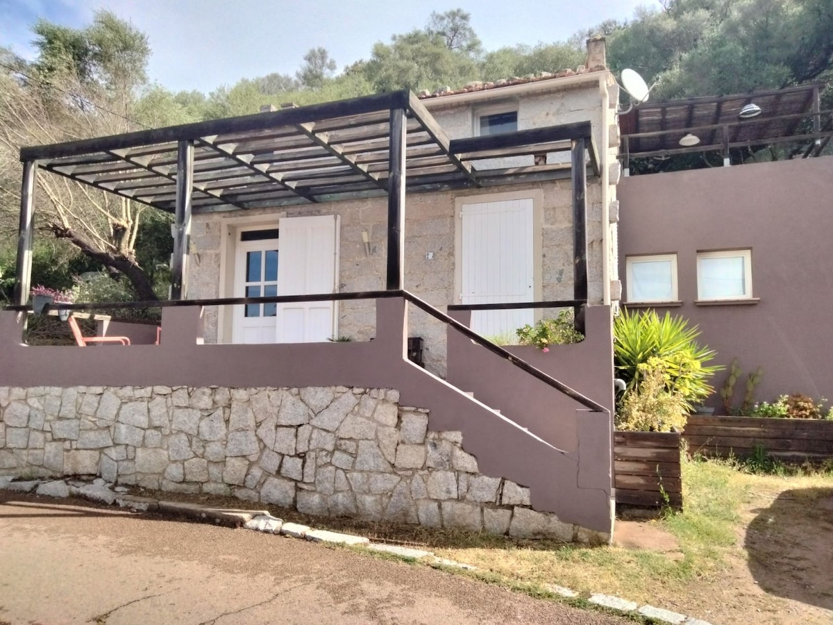 Cette maison de style Caseddu Corse se situe sur les hauteurs du golfe du Valinco dans le hameau de Figaniella. Il dispose de tout l'équipement nécessaire pour faire de votre séjour un moment inoubliable. Ici tous les éléments sont réunis pour profiter pleinement de la montagne mais aussi de la mer qui se trouve a 15 minutes en voiture. La terrasse avec une splendide vue vous procurera un sentiments de dépaysement total.