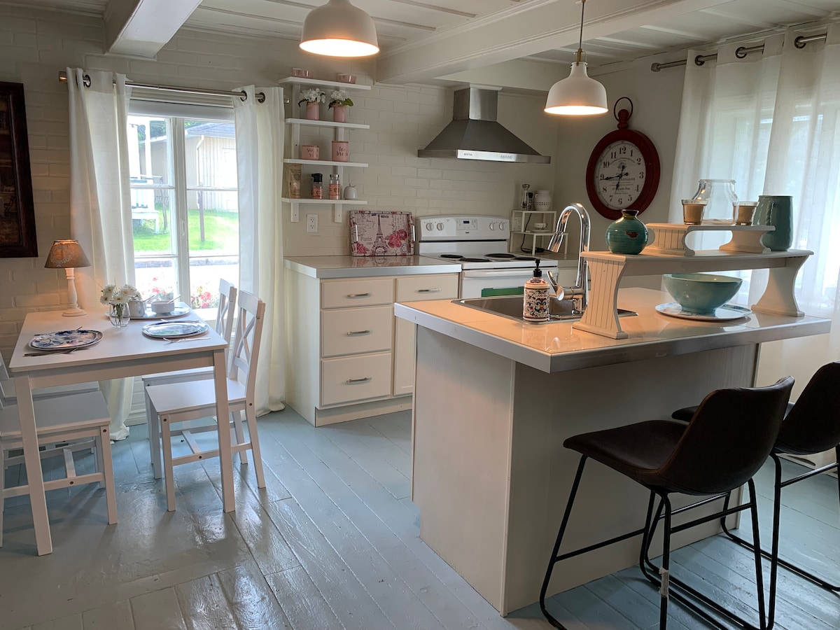 No établissement CITQ: 296715. Joli (PETIT) (studio) ancestral, chaleureux à proximité de tout. Joli quartier près des restaurants L'intimiste, Aux petits oignons. Tout près du traversier et du Quai Paquet. Stationnement pendant la journée entre 8 heures et 18 hres, 2 heures maximum. En tout temps de 18 hres à 8 hres. Du 1 décembre au 15 mars, AUCUN STATIONNEMENT DANS LA RUE ENTRE 23h ET 7h. Pendant cette période c’est préférable de venir sans auto.