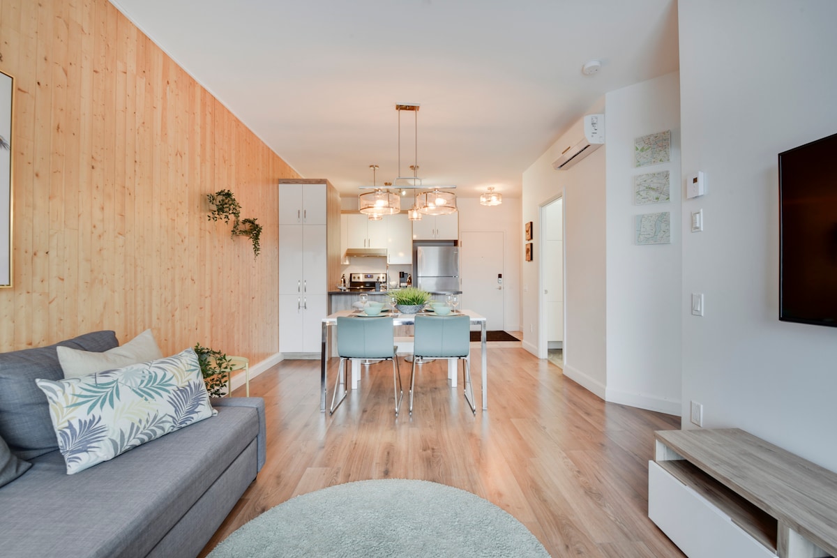 The 1106 is the novelty of the St-Roch district which is in full effervescence. In addition to the indoor gym, a heated swimming pool** is located on the roof surrounded by a magnificent terrace with a view of Old Quebec. The 1106 is a comfortable condo with King bed and Queen sofa bed in a fresh and cared decor. Everything is there for a perfect stay: air conditioning, washer/dryer, dishwasher, sheets and towels are also at your disposal. The ideal location for visiting Quebec!
