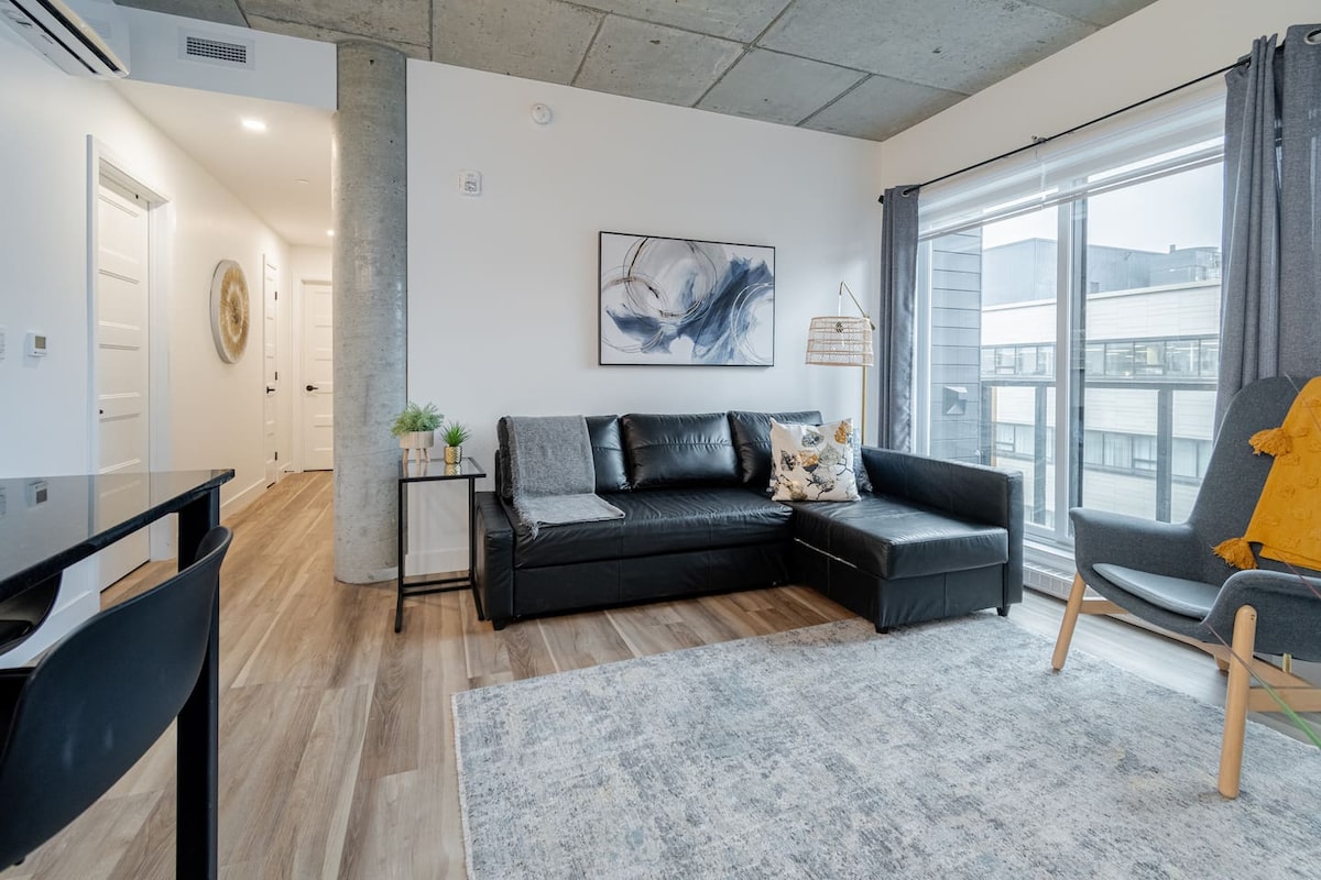 Come and enjoy an unforgettable stay in the heart of the Saint-Roch district in Quebec City. This modern and luxurious condo will charm you as much by its common spaces as by its interior design. ✧️ Indoor Parking included ✧️ Roof terrace with pool, dining area & outdoor fireplace ✧️ BBQ available year-round on the rooftop. ✧️ Fitness room available ✧️ Functional and pleasant apartment ✧️ Fast wifi and work space ✧️ Just a 15 minute walk to Old Quebec