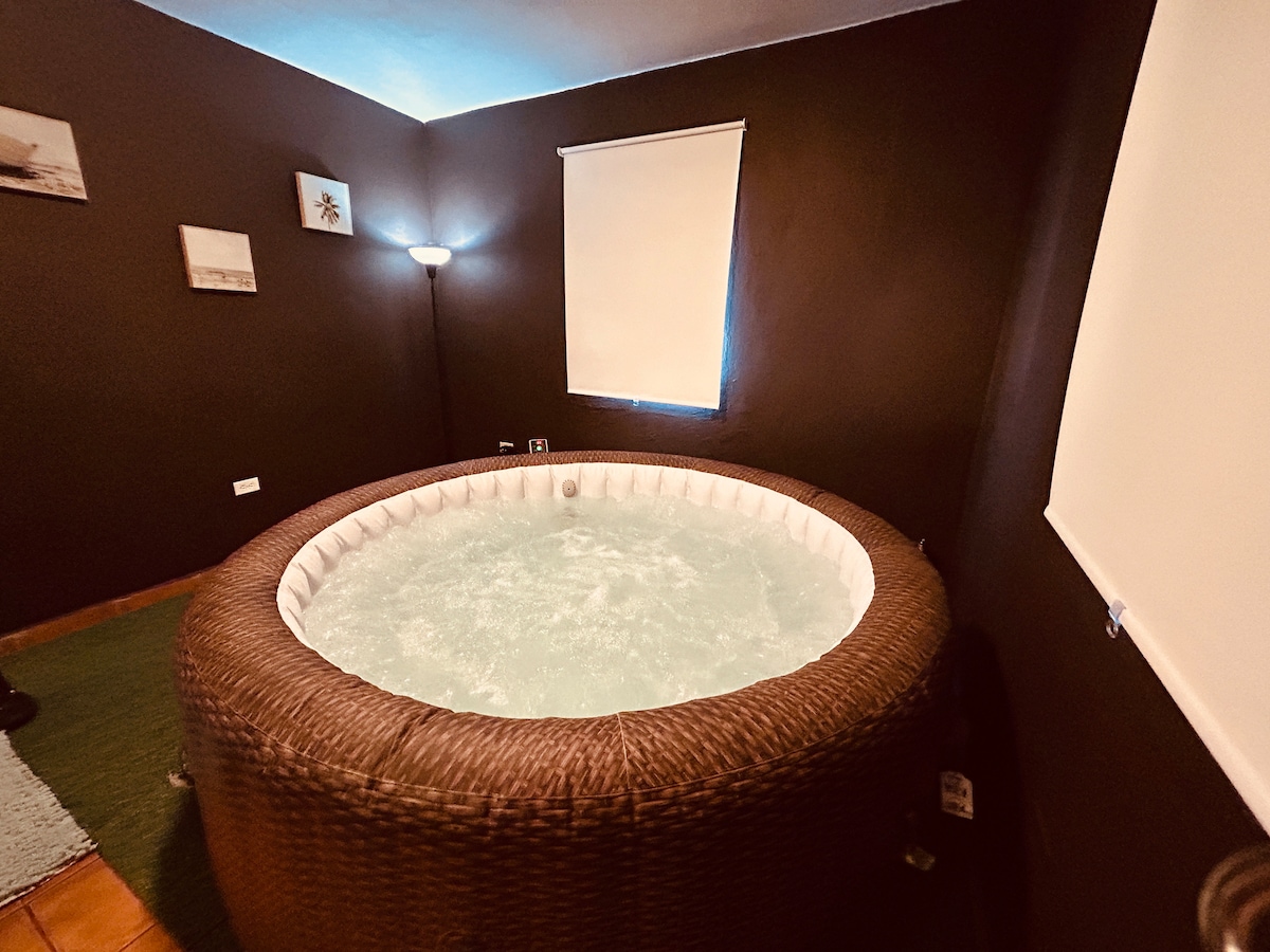 This modern apartment offers a tranquil residential vibe alongside quick, easy access to the downtown areas. A lovely place for you to retreat, relax, reset and revive yourself. It is a mini-retreat especially designed for you to come alone, or with a friend or partner to renew your love of life. Take some time for you! Don't wanna go out? There is everything you need to stay in! Coffee pot, cookware, full kitchen, wifi, Jacuzzi room (You'll love it), outdoor dinning set, and more.