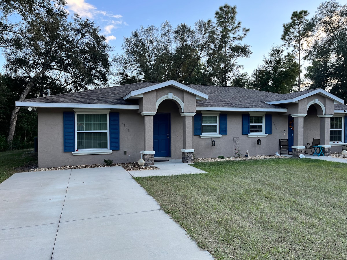Simple pleasures, no frills, and affordable – this pristine and uncomplicated space provides everything you need for a comfortable stay. Perfect for snowbirds spending the winter amid the “old Florida” charms of Citrus Springs, and you can bring your doggy! Relax in peace in a quiet neighborhood where a well-equipped kitchen, washer-dryer, TV, two queen bedrooms, and more await you. Close to everything, including hospitals and medical facilities, tennis court, golf courses, and bike trails.