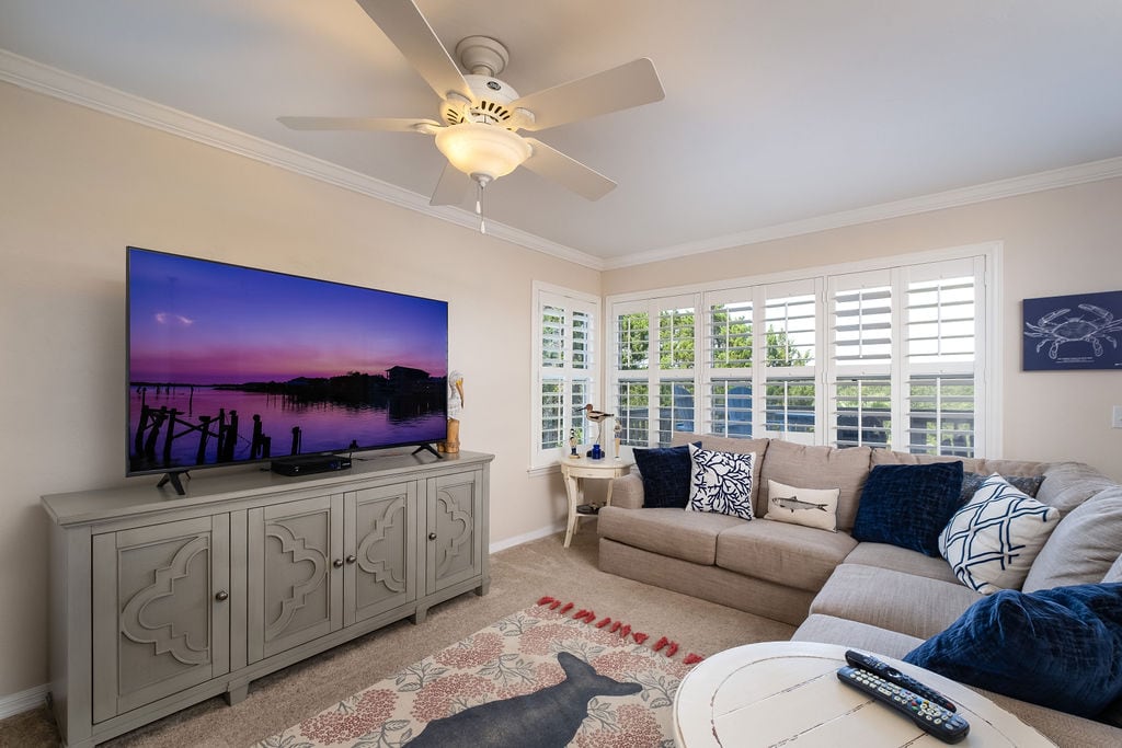 Non Smoking Condo Sleeps 6, 2 Bedroom, 2 Bathrooms 1 King/ 2 Twins/ 1 King Air Mattress Rental Includes: Glass top Stove, oven, fridge, dishwasher, dishes, pots, silverware, toaster, microwave, Keurig K-DUO Essentials Coffee Maker, linens included, washer/dryer, Internet (Wi/Fi) with Apple TV – Netflix, DVD player and games included in living room. Landline phone. Also includes: Private Pool, Cookout Pavilion, Private Boat Ramp & Dock, Fish Cleaning Station and Covered Parking.