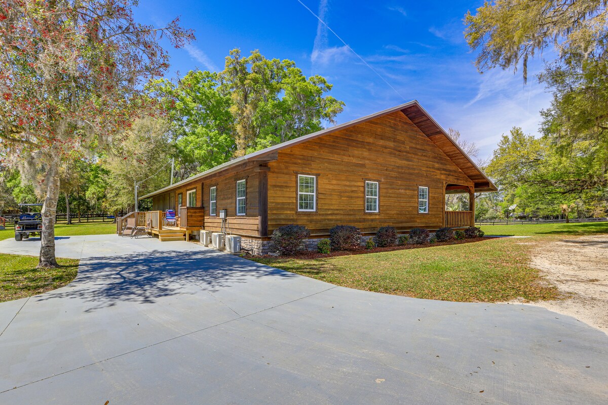 Relax with the whole family at this peaceful place to stay. Located on 10 acres, bring your dogs and your horses. Close to amenities, 35 minutes away from the World Equestrian Center and 15 minutes from downtown Crystal River. Relax in the pool, play volleyball on the regulation outdoor grass court or chill by the firepit - there is a ton of room to park your boat or horse trailer. Disney is located 70 miles away and Tampa Busch Gardens is located 60 miles away for fun day trips.