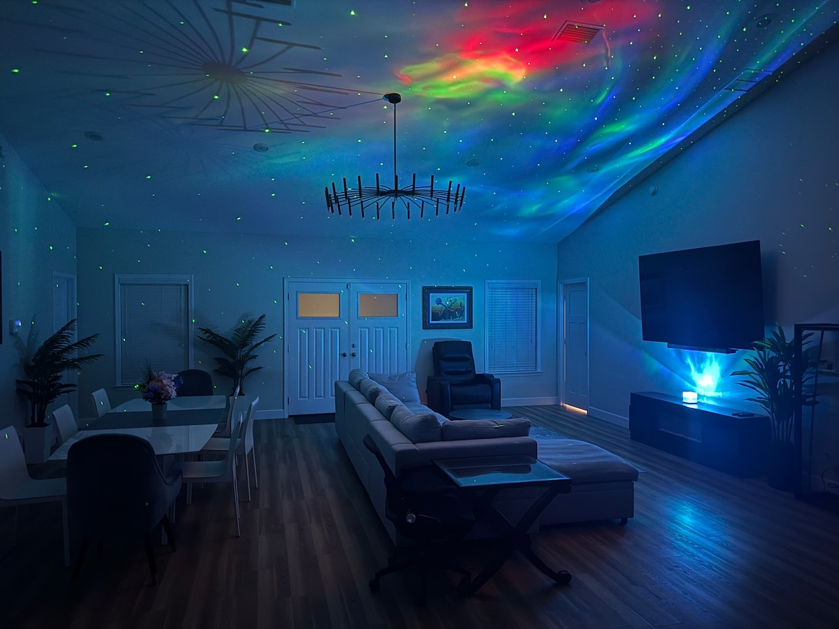 Welcome to the Peaceful town of Dunnellon, our Tropic Home is packed with all the amenities you need to relax, entertain yourself and get away from the city Game room including Pool table, Foosball, Basketball + TV Covered Patio + Playground + BBQ Grill 3 Miles from town/springs when you're ready to explore Eggs/Coffee always on the house, enjoy the morning after your arrival! Brand NEW fence just installed Take trash out to cans on the right side of the house after opening fence