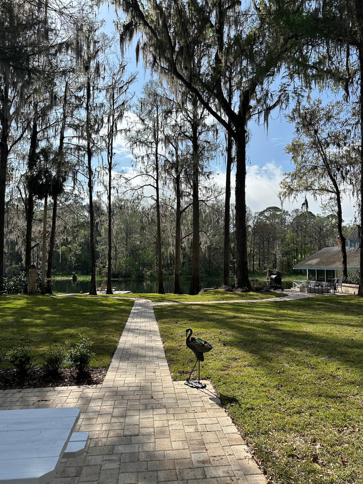 ☀Stunning sunsets on Lake Rousseau ☀Enjoy the glistening lake, natures sounds, and stunning views from your screened-in porch, dock or fire-pit ☀Activities: OK! Perhaps some corn hole or football on the manicured lawn if you are not too mesmerized by the sun glistening off of the water, the birds landing on the lake, or the many 300 y.o. Live Oak trees with Spanish moss that provide shade and filtered sunlight ☀Grill and then end the day with Sunset, peaceful sounds and S'mores on your bonfire