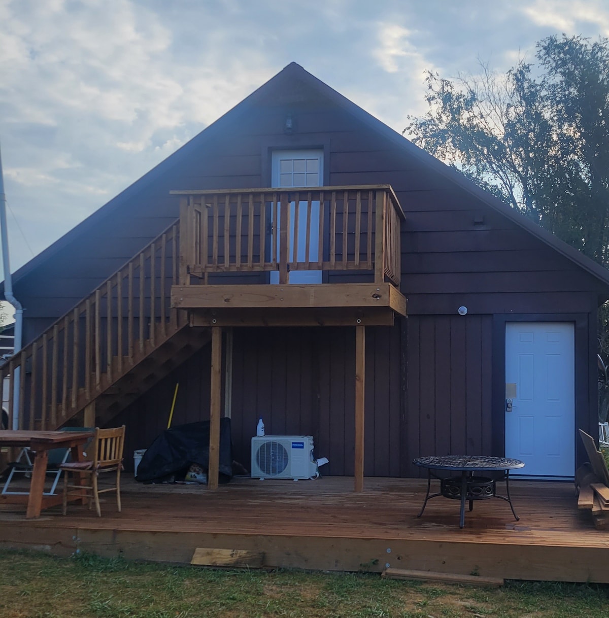 Welcome to The Pepper Shed! This is a unique utility, used as a dog house for our family dog Pepper. It has a built-in living quarters located next to our family home located along the Cedar River. Beds are located in open loft upstairs and bathroom is located on the ground level. While staying, feel free to make yourself at home with private access to a patio, dog kennel, walk out balcony with full accommodations of Wi-Fi, TV with Roku, washer and dryer, outdoor grill and full kitchen.