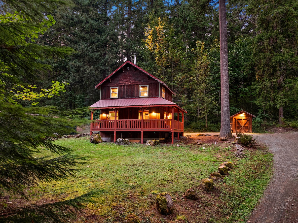 Book 2 Nights, 3rd Night FREE!* Just 8 miles to the Nisqually entrance of MRNP!🌲🌲 Our secluded cabin borders 1,000+ acres of State Forest, making it the perfect retreat. After a day of exploring, cozy up by the wood stove, play board games, Super Nintendo, read from the mini-library, or watch a VHS movie! Bring the nostalgia to life! *Valid SunThurs; Excludes Weekends & Holidays; Offer runs Oct 1-April 1. Free night applies to the least expensive night, 1 free night per stay.