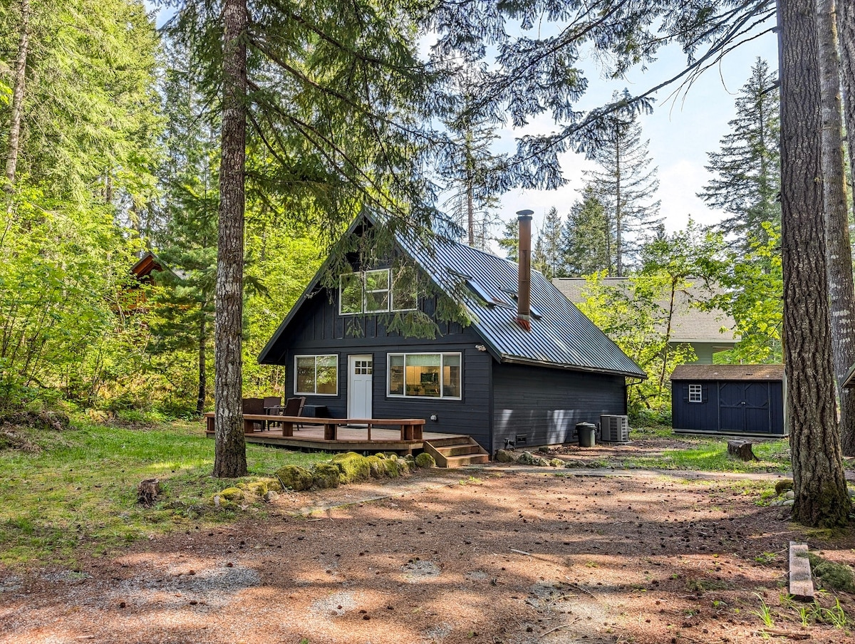 Relax with the whole group at this peaceful mountain retreat. Perfect vacation home for all seasons with hot tub, EV charger, wood stove and large deck with grill. Enjoy the giant yard, firepit, hammock and yard games. Dog friendly and less than a 10 minute walk to the Nisqually River Basin, and a 5 minute drive to the entrance of Mt. Rainier. Enjoy the starry nights with plenty of space to spread out. Surrounded by world-class hiking near the peaceful village of Ashford, Washington. Enjoy!