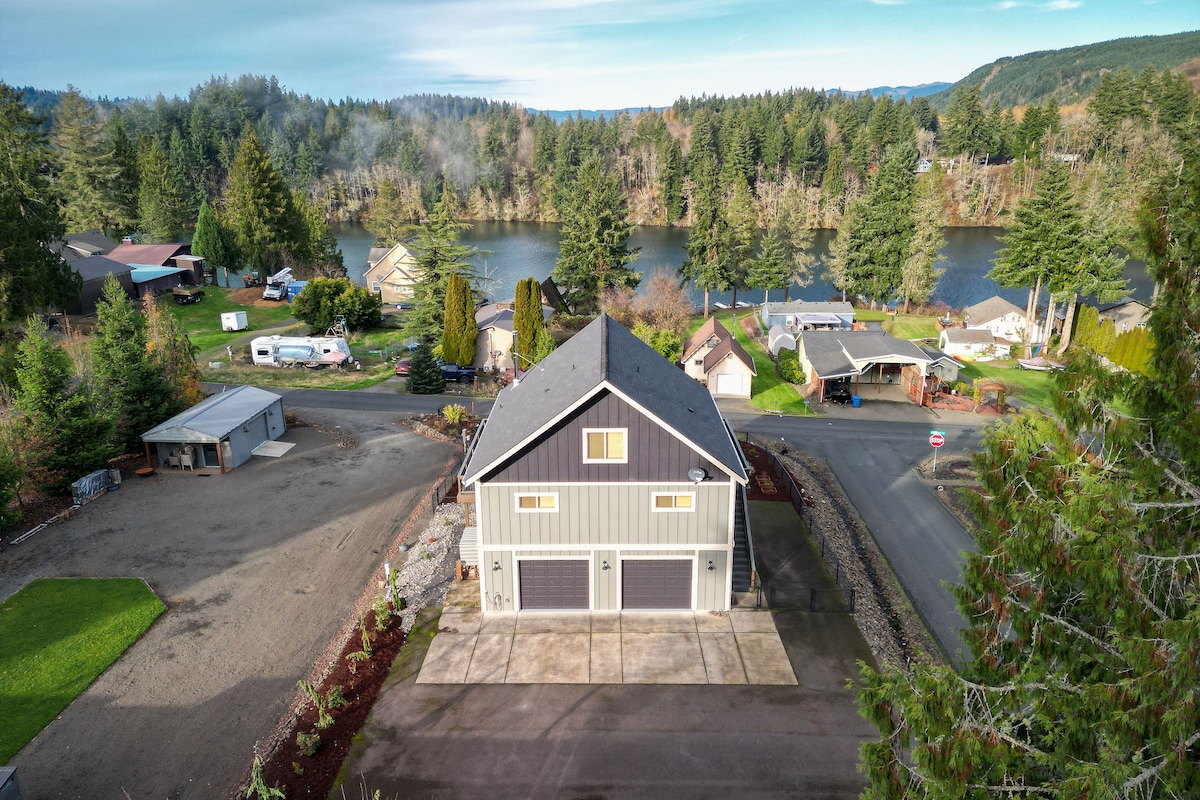 Book now for festive & fun holiday getaways! Christmas & New Year's are open! The cozy family-friendly home is great for solo, romantic, group or friends getaways, w/hot tub & covered deck! Across the street from lake. Bask in nature. See sunsets over the lake from covered deck. Enjoy winter recreation at White Pass Ski Resort and Mt. Rainier! Check out "Christmas with the Clauses" train excursions at nearby Mt Rainier Scenic Railroad. Visit historic downtown Centralia for last minute shopping.