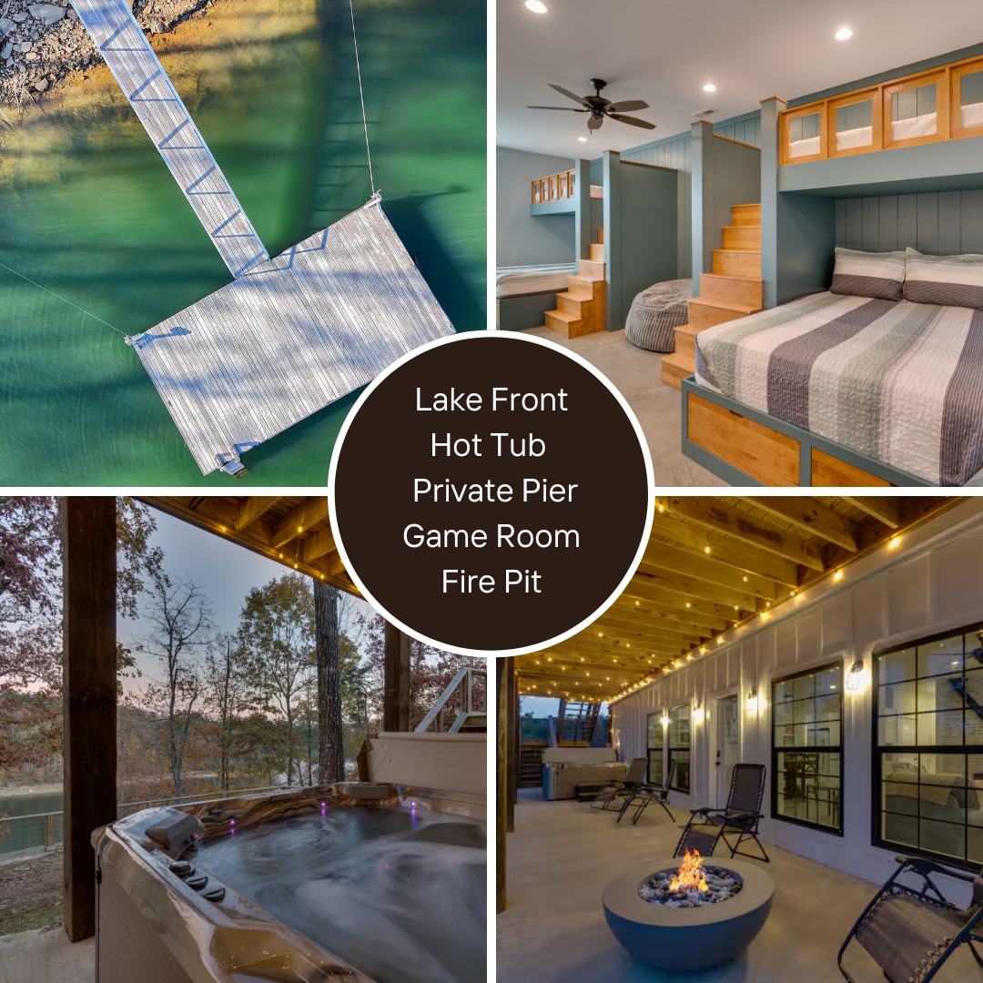 Welcome to our stunning and luxurious lake bungalow retreat! This rental offers the perfect blend of relaxation and entertainment. Situated on a hilltop with long range lake views and breathtaking sunsets that will leave you in awe. Step outside and indulge in the ultimate outdoor experience. Take a refreshing dip in the sparkling pool, work on your short game at the custom putting green, play ping pong on the turf lawn and as the sun sets gather around the fire pits! (*$150/day to heat pool)