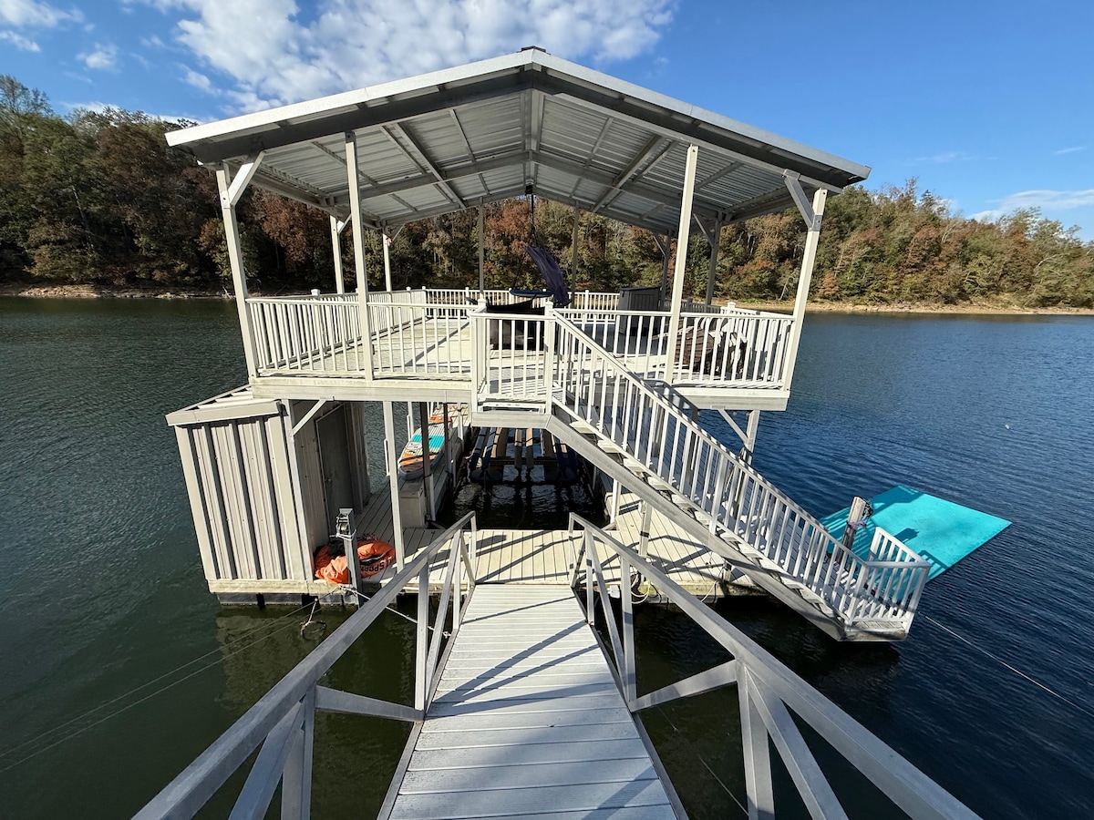 Discover Alabama’s majestic Lewis Smith Lake from this private retreat. The separate living quarters (main house + carriage house) make it perfect for 2 families or vacationing with in-laws. Perched on a hill, it feels like a treehouse. Close to I-65, the home enjoys a prime location in a quiet slough off the widest part of the lake. The chef’s kitchen, outdoor kitchen, and large dock for swimming and lounging make it perfect for anyone looking to unwind and enjoy the beauty of Smith Lake.