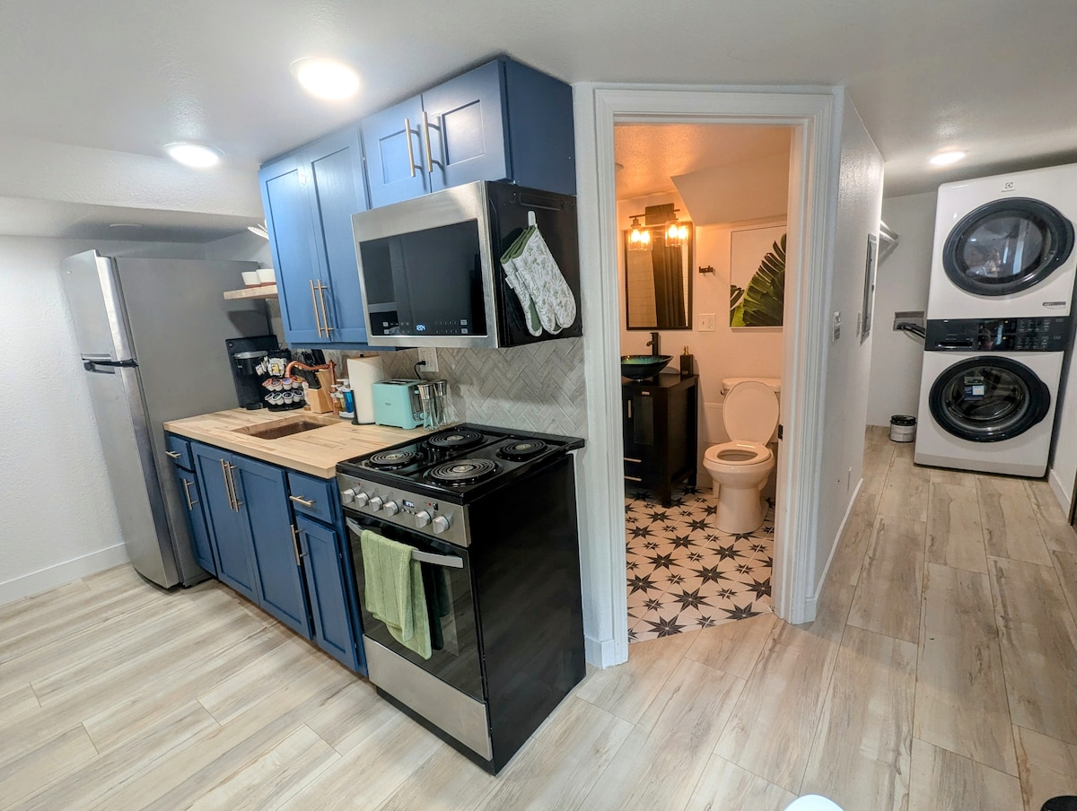 A newly updated and trendy smaller home with central location to Lewiston and Clarkston, from the airport, to hospital to HWY 95--everything is easy access. The area has an open concept living, kitchen with laundry. Off the kitchen is one bedroom with master suite. All finishes are top of the line and you will feel right at home! This space is located on the lower half of the property. Perfect for medical and business professionals. Please inquire if interested in longer term bookings.
