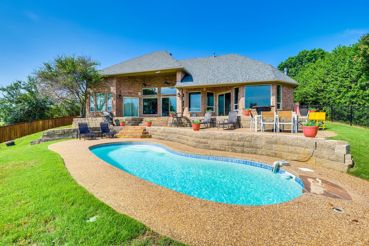 Transport yourself into this relaxing oasis, a mixture of lake house and country living. Very private and secluded. 5 miles - Knotting Hill Place 5 miles - The Hillside Estate 14 miles - PGA Frisco 30 miles - DFW Airport 40 miles - Downtown Dallas Unwind by the fire pit, in the hot tub, fishing (bring your gear), or grilling Tons of games available: pool table, cards, giant outdoor chess, jenga, ping pong Jack&Jill bedrooms can be set as 1 king or 2 twin beds each to accommodate your needs