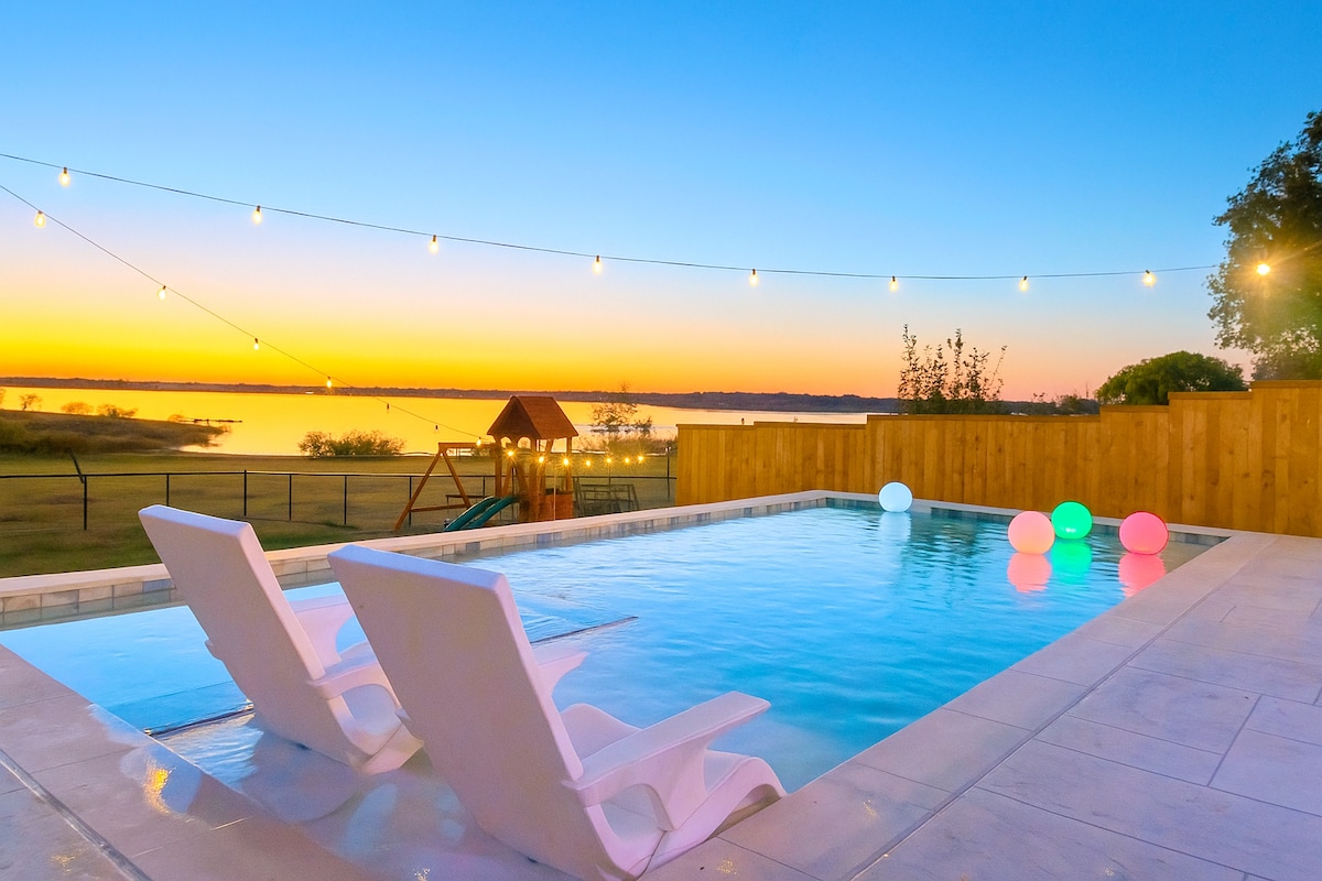 Top 5-rated home on Lake Lewisville! This 3BR/2BA modern farmhouse offers stunning lake views, two porches, completely remodeled, spa-like bathrooms—refinished hardwoods, a gourmet kitchen, stainless appliances, cozy furnishings, and dreamy beds. Set on over 1 gated acre, enjoy a private security gate, 5 STAR shared amenities: fishing, 8 person HOT TUB, kayaks, paddleboards, lake toys and BBQ Grill Stocked like a hotel but feels like home—perfect for relaxing or playing on the lake all day.