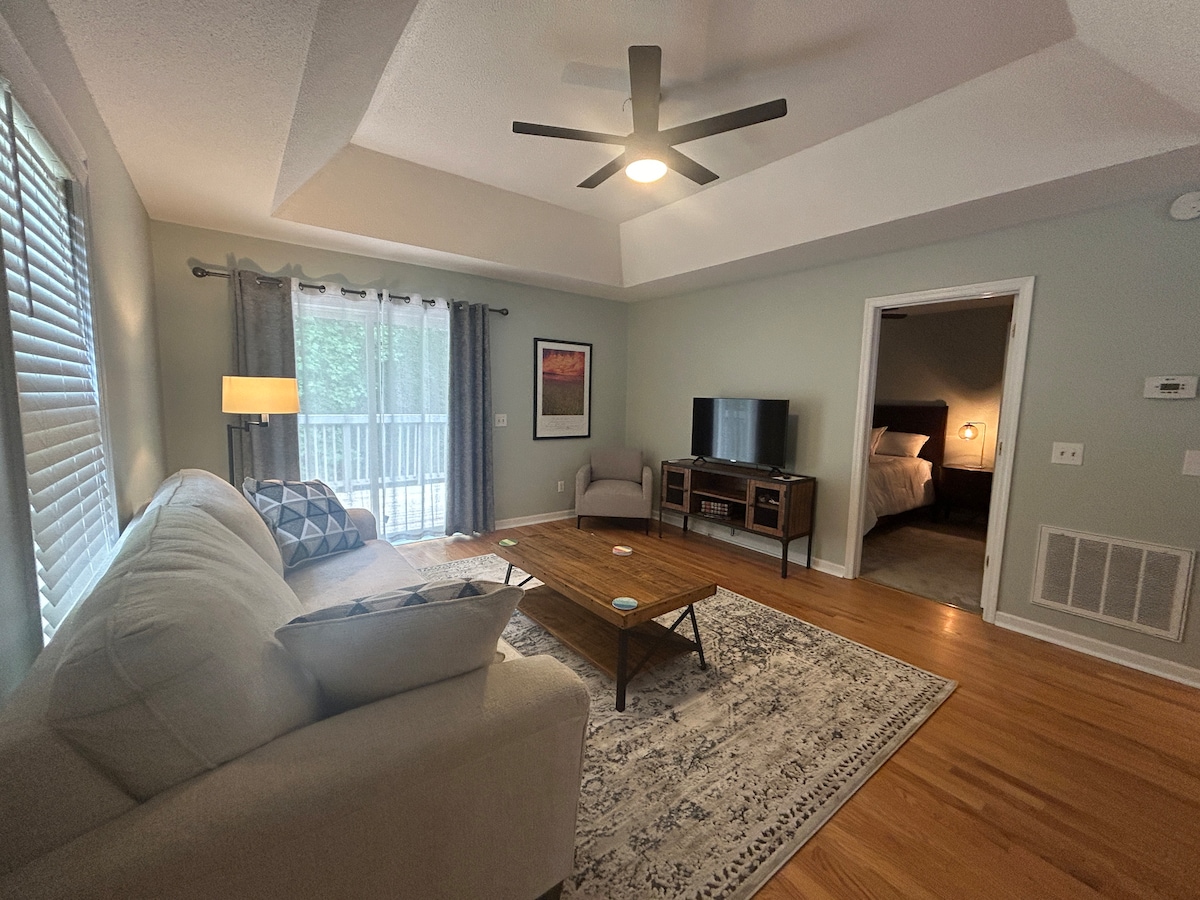 Crisp and cozy, modern studio apartment with private entrance, and access to park-like backyard, located right in the center of the Columbia, Irmo and Ballentine areas of SC. Quiet and tidy neighborhood, with free off-street parking for up to two vehicles. Just minutes from Lake Murray, Saluda Shoals Park and River, shopping and restaurants, approximatly 15-20 minutes from down town Columbia, the Vista, U of SC & CIU campuses, Williams-Brice Stadium, and about 20-25 minutes from Fort Jackson.