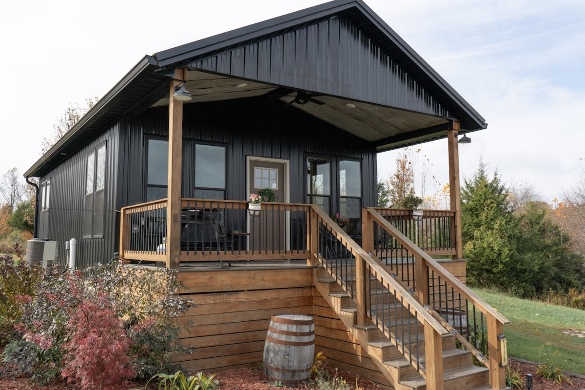 Recognized as Airbnb’s “2021 Top New Airbnb in Kentucky,” this cozy farm cabin overlooks rolling fields on a working cattle farm. Meet and feed cows, goats, a pig, and our beloved donkey Otis! Inside, enjoy hand-crafted charm with barn wood walls, full bath with bourbon barrel sink, king bed, sleeper sofa, and custom kitchenette. Connect with nature in the large outdoor pavilion with a stone fireplace. Located in the heart of the Bourbon Trail, close to Wild Turkey, Four Roses, & Buffalo Trace!