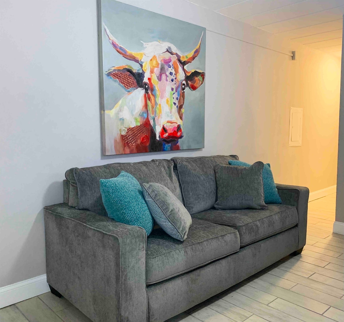 Lexington's Artistic Bunker is a space carefully crafted with amenities aplenty! Perfect for the traveling business, medical, or education professional, the guest visiting family/friends, or those experiencing the beauty of the Bluegrass, this modern condo is located in the heart of downtown Lexington. Featuring one bedroom, concrete floors, original murals, walk-in shower, and vaulted ceilings this high-end industrial condo will leave guests satisfied from every angle.