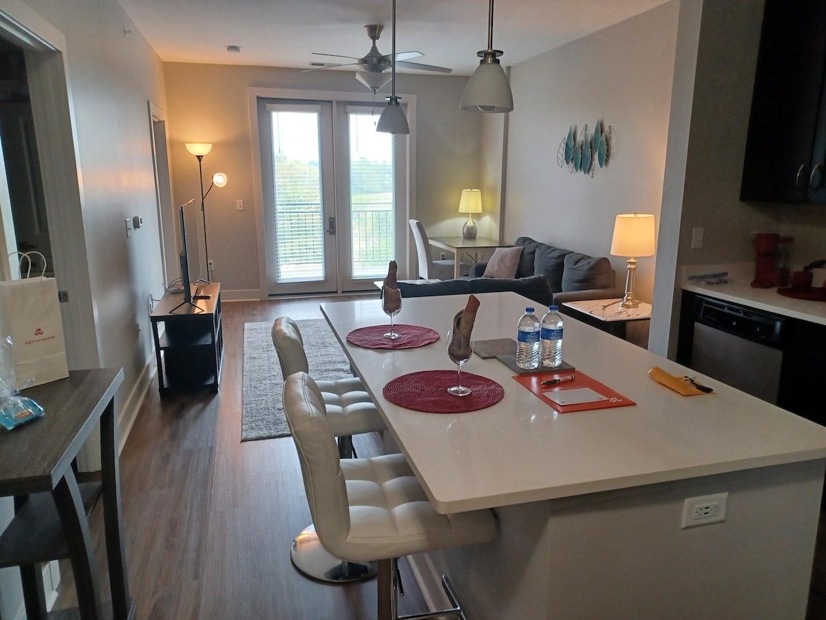 Beautifully renovated building built in 1880's in the heart of downtown Versailles. Wild Turkey Unit • 2 Bedrooms, 1.5 bathrooms • Kitchenette • Living Room • 2 45" Smart TV's • Onsite parking Walking distance to coffee shops, restaurants, bourbon bar, bakery. 11 min to Keeneland 15 min to Distilleries 12 min to Lexington Airport 50 miles to Louisville *Offsite Amenities- public pool & boat dock. Please refer to Location Activities section for more details. *Rental agreement required