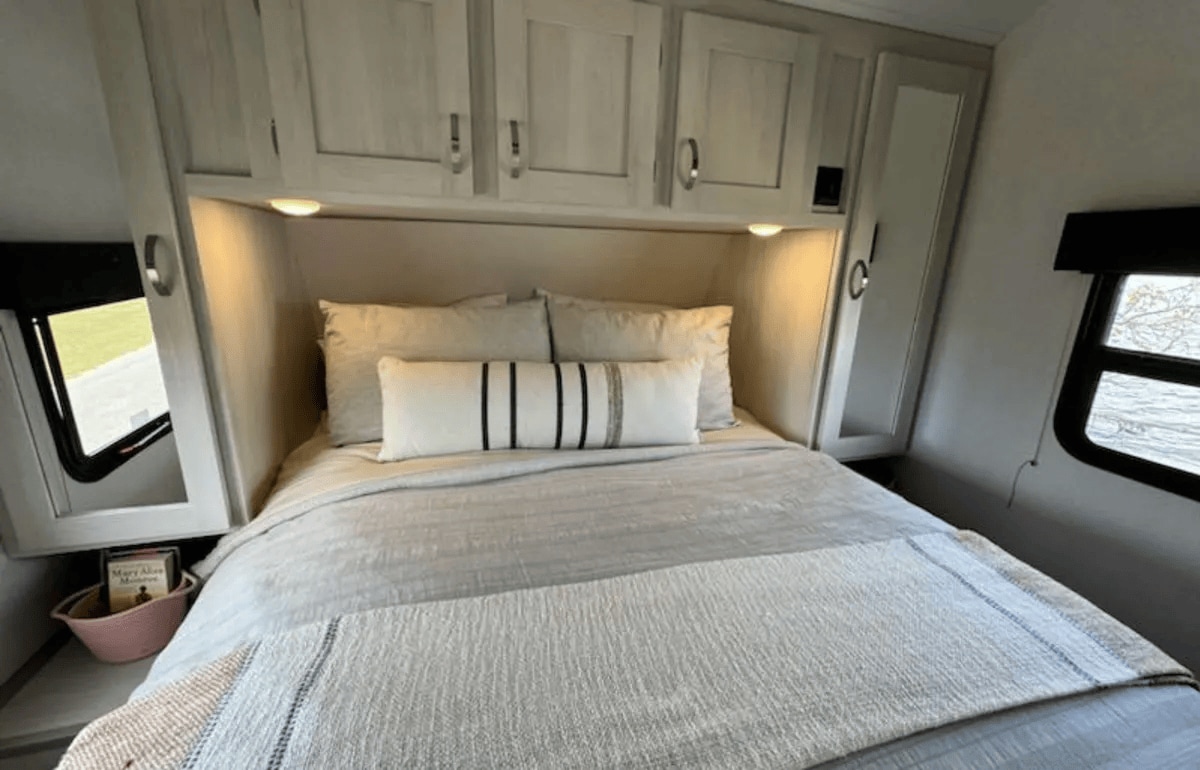 Kentucky Glamping at its finest. Get the best of the “horse capital of the world” renting our Peachessa RV with set up at the Kentucky Horse Park. Peachessa is the best friends & family travel camper in all of bourbon country! What makes this RV special is the full second bedroom with FOUR bunks, and fully stocked coziness ready for your trip. We move this RV around to venues throughout KY to help offer you the full experience. Reach out and we’re excited to help you plan your adventures!