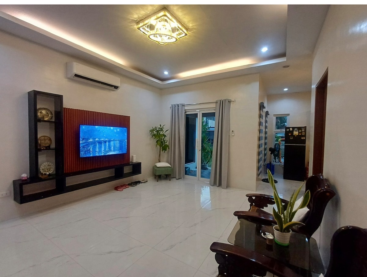 open for long term stay 50mbps internet speed whole house can accomodate up to 10 pax (extra charge per pax in excess of 4) huge indoor loft hammock can carry up to 5 pax indoor pool with outdoor shower own water filtration system & water pressure tank fully furnished fully air-conditioned 24/7 security garage with TV spacious lving area with sofa bed & couch Netflix ready Smart TV terrace with shoe organizer bicycle/motorcycle & car rentals basketball court & gazebo inside the subdivision