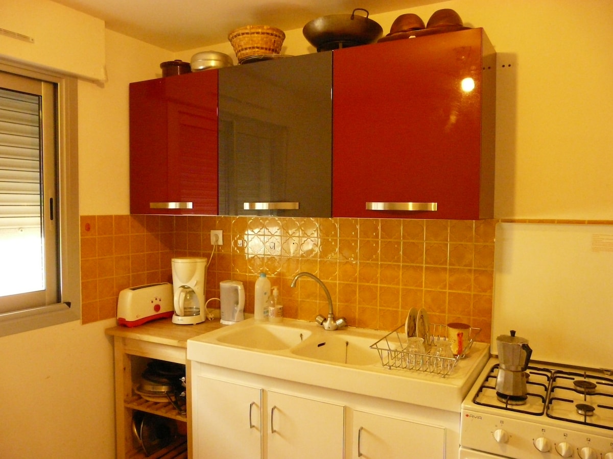 My studio is a perfect choice for those who are looking for a quiet place and want to have easy access to both the city center and the seaside. You will enjoy quiet nights in a residential area, being only 25 minutes walk from the heart of Montpellier (Place de la Comedie). This modern space with wooden beams and a lot of light was planned by a local architect. Take a rest in our queen-sized bed (160 cm) and enjoy your stay.