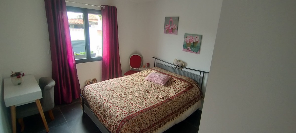 Hébergement dans une villa récente, plain pied. Le logement dispose 1 chambre, lit double, salle de bain privative , double vasque, douche italienne et toilette. Petit déjeuner avec du pain au levain fait maison et confiture maison. La maison est non fumeur, ni animaux. Les draps, serviettes et savon fournis. Accès à la piscine et ses transats horaire à convenir Nous sommes à 15 mn de Narbonne, 30 mn de Carcassonne, 30 mn des plages de Gruissan et à 5mn du canal du midi. Philippe et Sylvie