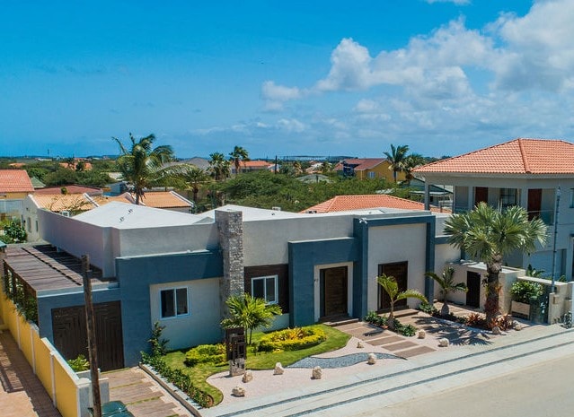 Are you looking for the ideal villa with private pool and just a 3 minute drive to the best beaches in the world? Don't look further and welcome to Blue Villa! Blue Villa is a 1500 sq. ft. modern home designed as the perfect vacation retreat. This 2 bedroom/2 bathroom villa with private pool and large garden is located only a 3 minute drive from Palm Beach and close to the best restaurants and casinos. Escaping cold weather for a longer period? Multiple months rent is also possible.