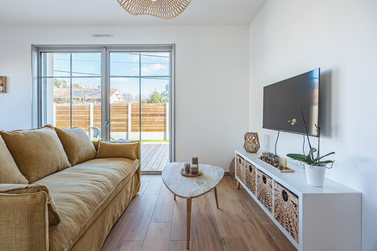 Niché sous les chênes et au calme nous vous invitons à découvrir notre charmant studio neuf de 40m2, idéalement situé entre Arcachon et le Cap Ferret. Ce studio, à la fois spacieux et confortable, est équipé d’une cuisine moderne, d’une climatisation réversible et d'un espace de travail équipé d’une connexion fibre. Une place de parking est à votre disposition avec possibilité de recharger votre véhicule électrique.