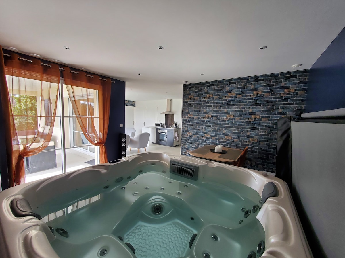 Logement T1 meublé, très lumineux, 50 m2, en rez de jardin, attenant à notre habitation. -1 chambre avec salle de bain et WC, 2 couchages pour 2 pers -1 pièce à vivre avec cuisine incorporée.(plaque vitrocéramique,four, lave-vaisselle, lave-linge, réfrigérateur-congélateur, meubles de rangement), 1 canapé convertible couchage 2 pers - Télévision , accès internet par WIFI,
