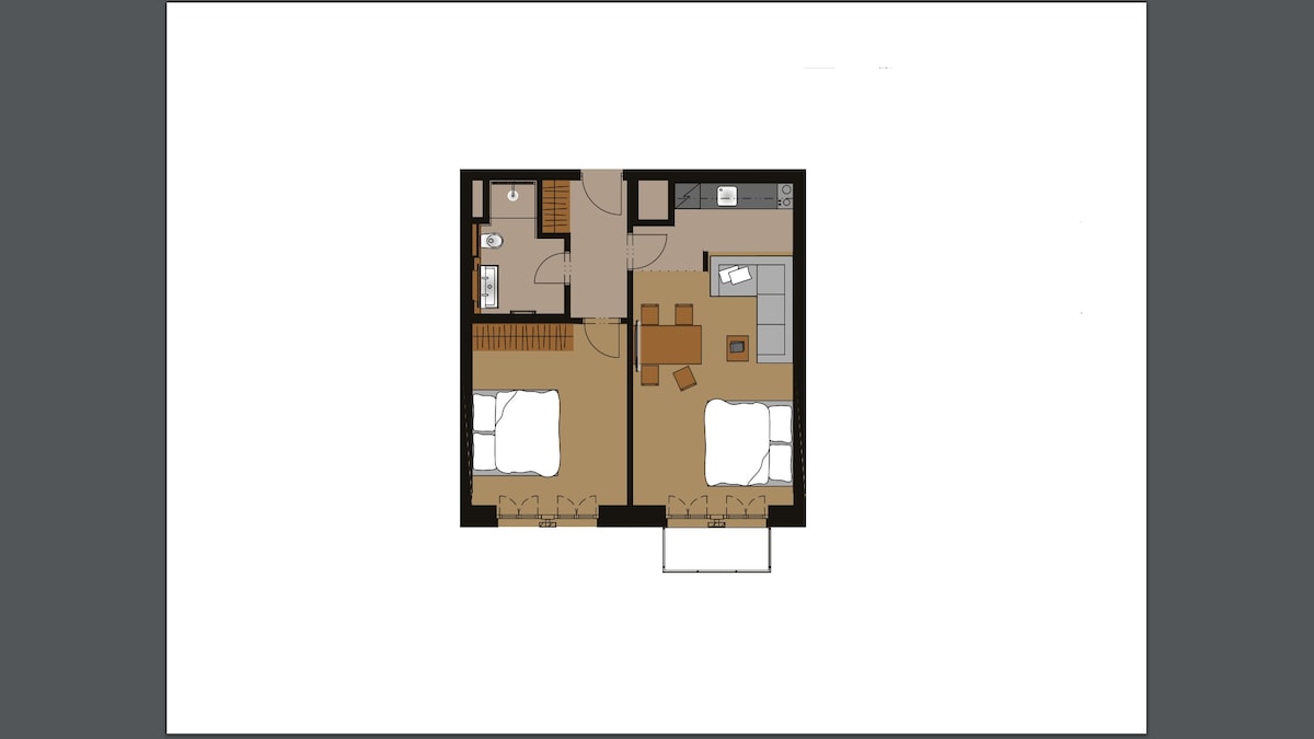 Tříůžkový apartmán v 1. patře dostupný výtahem. Pokoj s manželskou postelí, samostatnou postelí + dětská postýlka. Plně vybavená kuchyně, kávovar, lednice, mikrovlnná trouba, myčka. Koupelna se sprchovým koutem, pračka, wc. Balkon s posezením. Velká chodba s úložným prostorem, podlahové topení a rekuperace. TV a wifi samozřejmostí .Apartmán je směřován na slunnou stranu, je velmi útulný. V ceně sklep se sušákem na boty a stojanem na kola. Parkování v areálu Resortu v ceně. Sauny za poplatek.