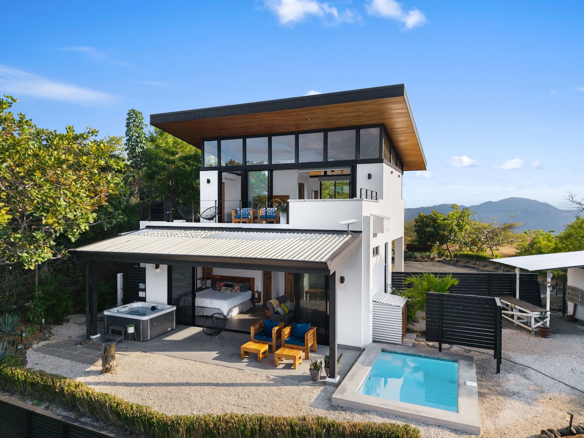 Casa Gungun is located at Villa Isabela, a 15.000 square meter ocean view property facing the pacific ocean at Playa Negra, Guanacaste. This 1 bedroom house has a spacious bathroom with a bathtub with a view. You can find everything you need to prepare a nice meal at our kitchen- living area, and after a surf session, hiking or mtb ride, you can chill at our jacuzzi appreciating the panoramic view. The house has a nice sofa with a 50"tv for a movie night. House for 2 people.
