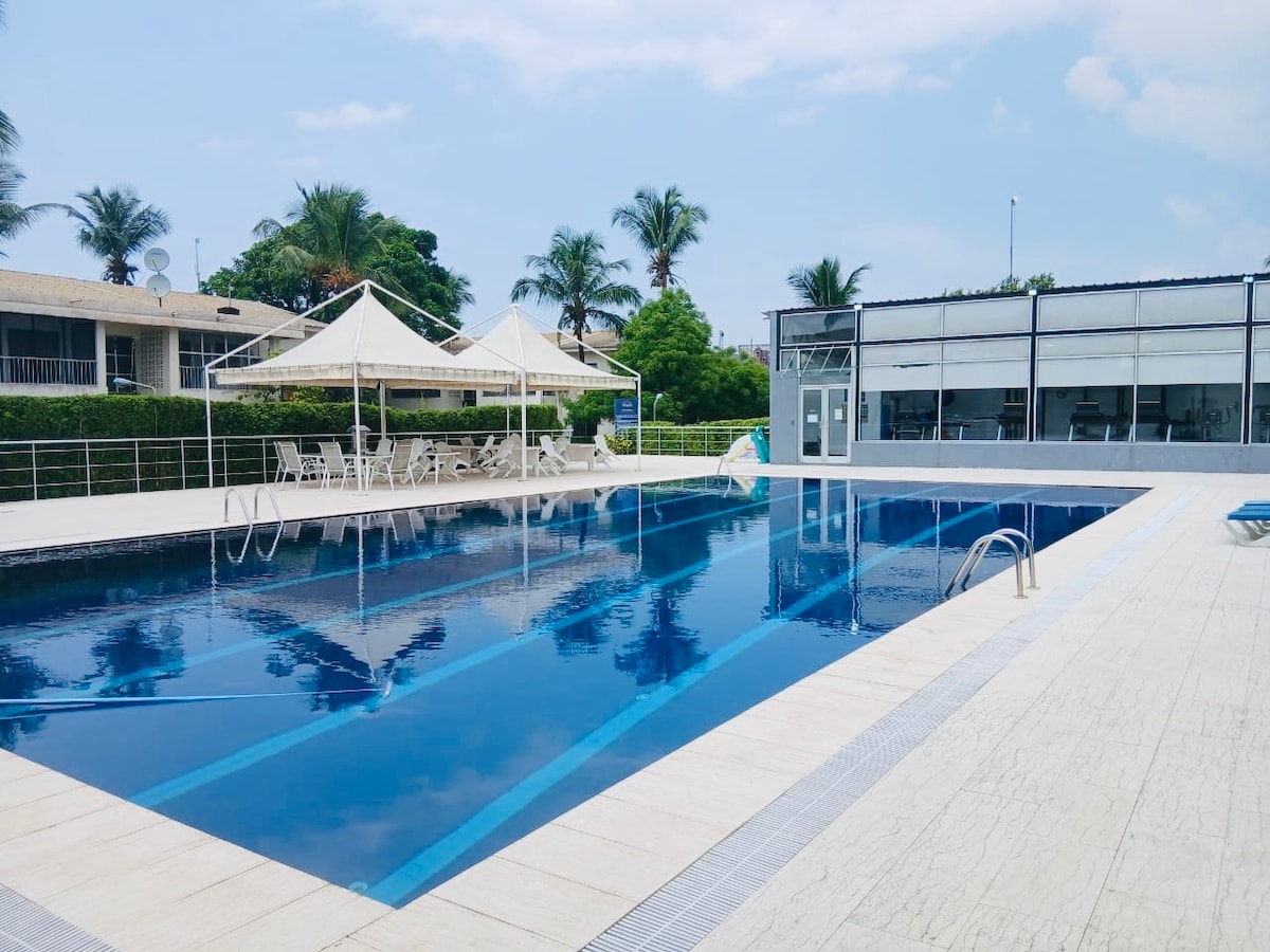 Fully Furnished (2)Two Bedroom Apartment is available for rent or short stay. This property is located in Beverly Hills community, Hotel Africa, Liberia. This property is in a gated community. This property have indoor features which includes: well furnish living and dining area, fully fitted kitchen, 2 beautiful spacious bedroom, fully fitted bathroom, full A/C balcony, HD DSTV connection, 24/ 7Electricity Pipe bond Water, Water Heater, 24/7 Security, Internet Connection, Parking Space etc.