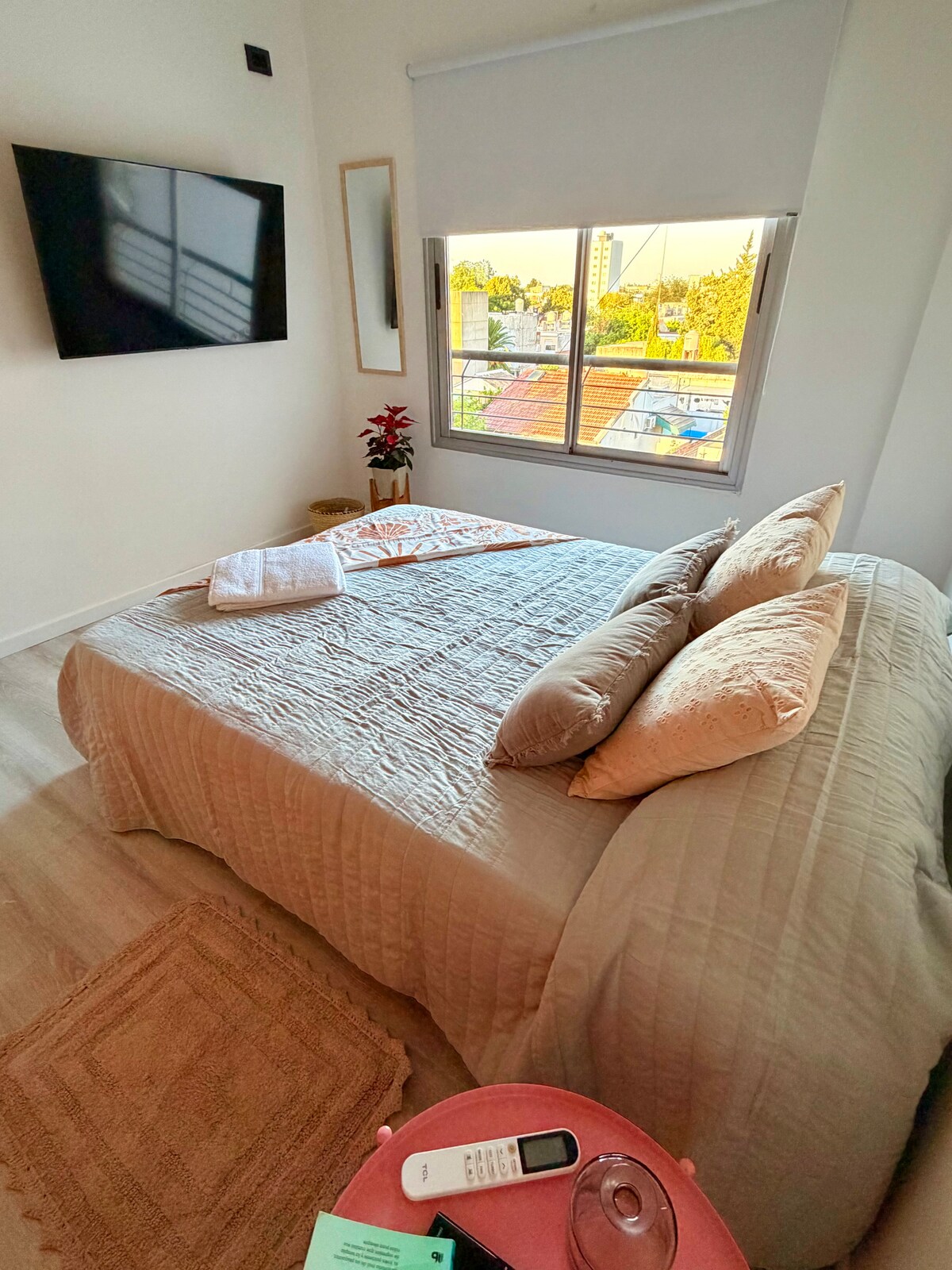Excelente ubicación a metros de Zona Gastronómica, a 350mts de la Estación de tren y a 10 minutos de Parque Leloir. •Balcón . •Super luminoso •60 mts cubiertos, con espacios amplios. Living comedor, cocina separada, baño completo con bañera, dormitorio. •Aire Acondicionado frio calor en living y otro en la habitación. •Lavarropa, Heladera, Cocina completa para 4 personas . •Ropa Blanca. •Servicio Internet y wifi, Cable, TV Smart 55 pulgadas. •Sommier Matrimonial y Sofá Cama •Cochera cubierta ok