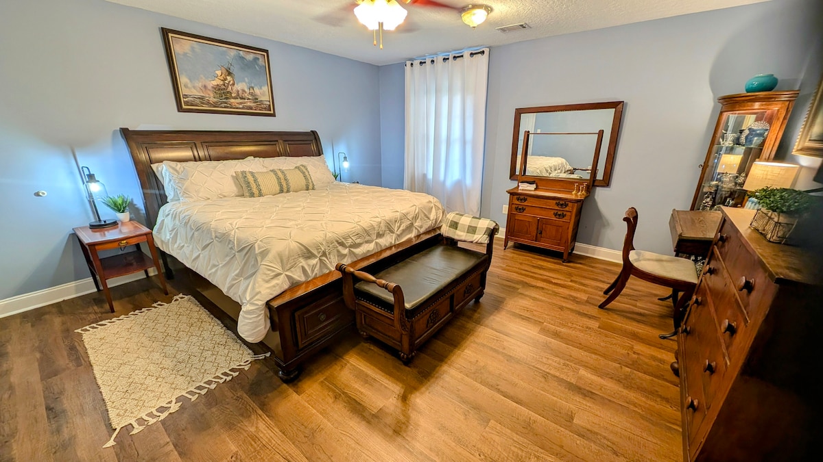 This is your own private space. It is a newly renovated bedroom attached to our house with a private bathroom & entrance. -Coffee/cereal bar -Refrigerator/microwave -WiFi/TV -Full privacy Located in Pooler 5 min from i95 10 min from Sav Airport 15 min from downtown Savannah 45 min from Tybee Island 10 min from several restaurants, shops & Tanger Outlets **SOME REVIEWS MENTION A SHARED BATHROOM. THESE REVIEWS ARE FROM BEFORE OUR REMODEL. WE HAVE ADDED A PRIVATE ATTACHED BATHROOM TO THE ROOM**