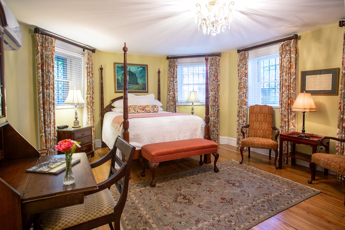 Situated on the 2nd floor of a historic 1900 Victorian home in downtown east side Savannah, The Jasmine Room is a beautiful, spacious guest room with a 4 post king bed & luxurious Vera Wang pillow-top mattress for a peaceful night's sleep. Convenient 20min walk to Forsyth Park & 5min Uber/drive to most downtown restaurants & attractions.