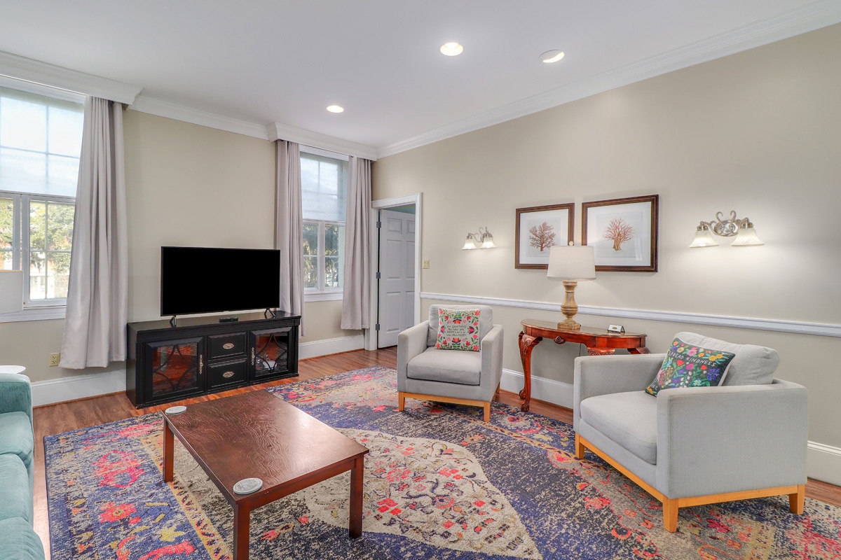 The Salon is a large and gracious residence overlooking famous Jones Street in the heart of the historic district. At an impressive 1,400 square feet, this beautiful offering is the largest of all 4 lodgings at 120 West Jones Street, encompassing the entire 3rd floor of the house. The Salon has retained its historic character, including original heart-pine floors and elegant molding, while being tastefully updated with modern conveniences. SVR-01495 For concierge service visit 120WestJones.com