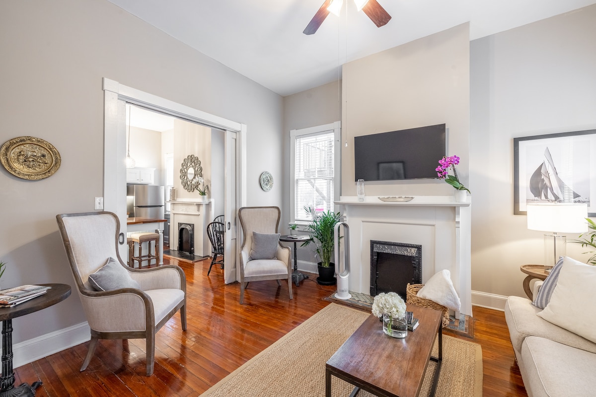 Enjoy our peaceful and spacious condo, perched on the second floor of our historic Savannah estate, just steps away from Forsyth Park! This 1-bedroom, 1-bathroom condo (with a convenient pull-out sofa, great for your extra guest!) is the perfect home base for your Savannah stay! Fully-equipped kitchen with all the amenities, cozy and comfortable living space with flat screen SmartTV, fast WiFi, and the cherry on top...a HUGE private balcony! SVR 01789